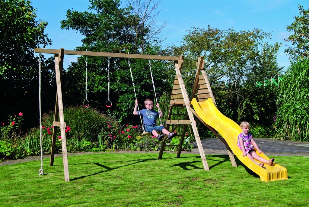 • Een glijbaan en 4 grondankers zijn