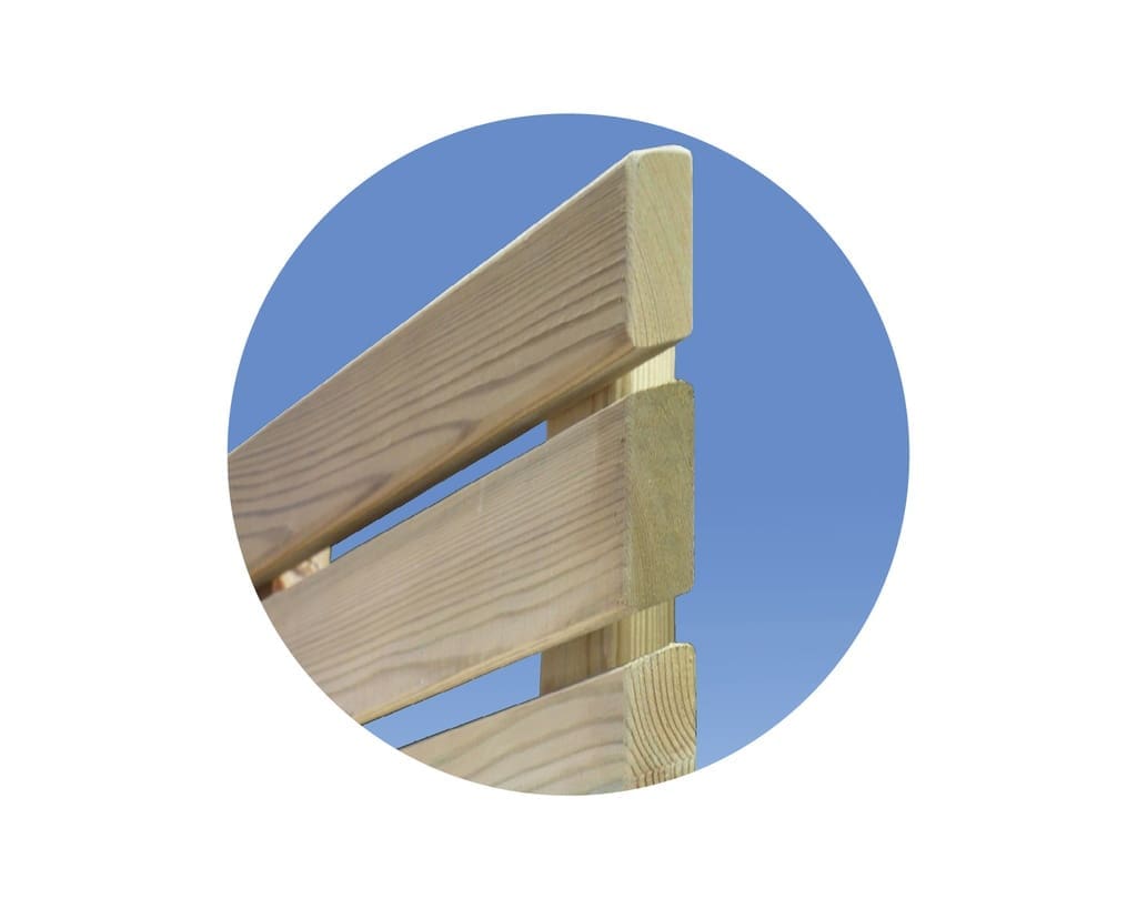 - Wordt bevestigd met houtschroeven aan volle houten palen in grenen