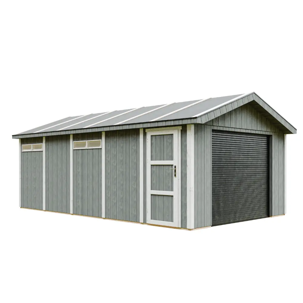 De wanden van de garage zijn opgebouwd uit een stevig houten frame van 60×60 mm, afgewerkt met 10 mm dikke LP® SmartSide® panelen met primerlaag.