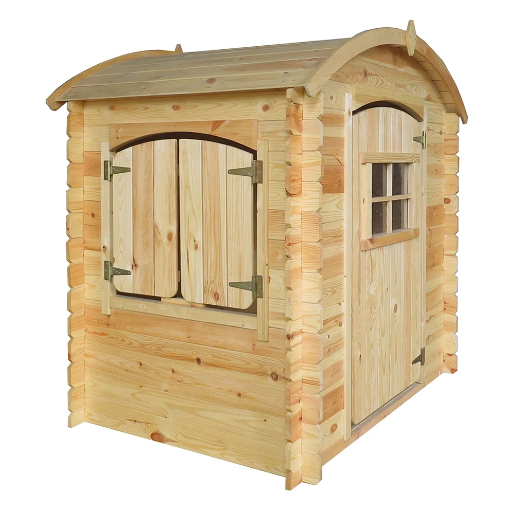 Alle speelhuisjes zijn gemaakt van natuurlijk hout, vrij van schadelijke stoffen, en EN-71 gecertificeerd, wat maximale veiligheid garandeert. De ramen en deuren hebben 15–20 mm speling tussen de kozijnen, waardoor het risico op verwondingen wordt verminderd.