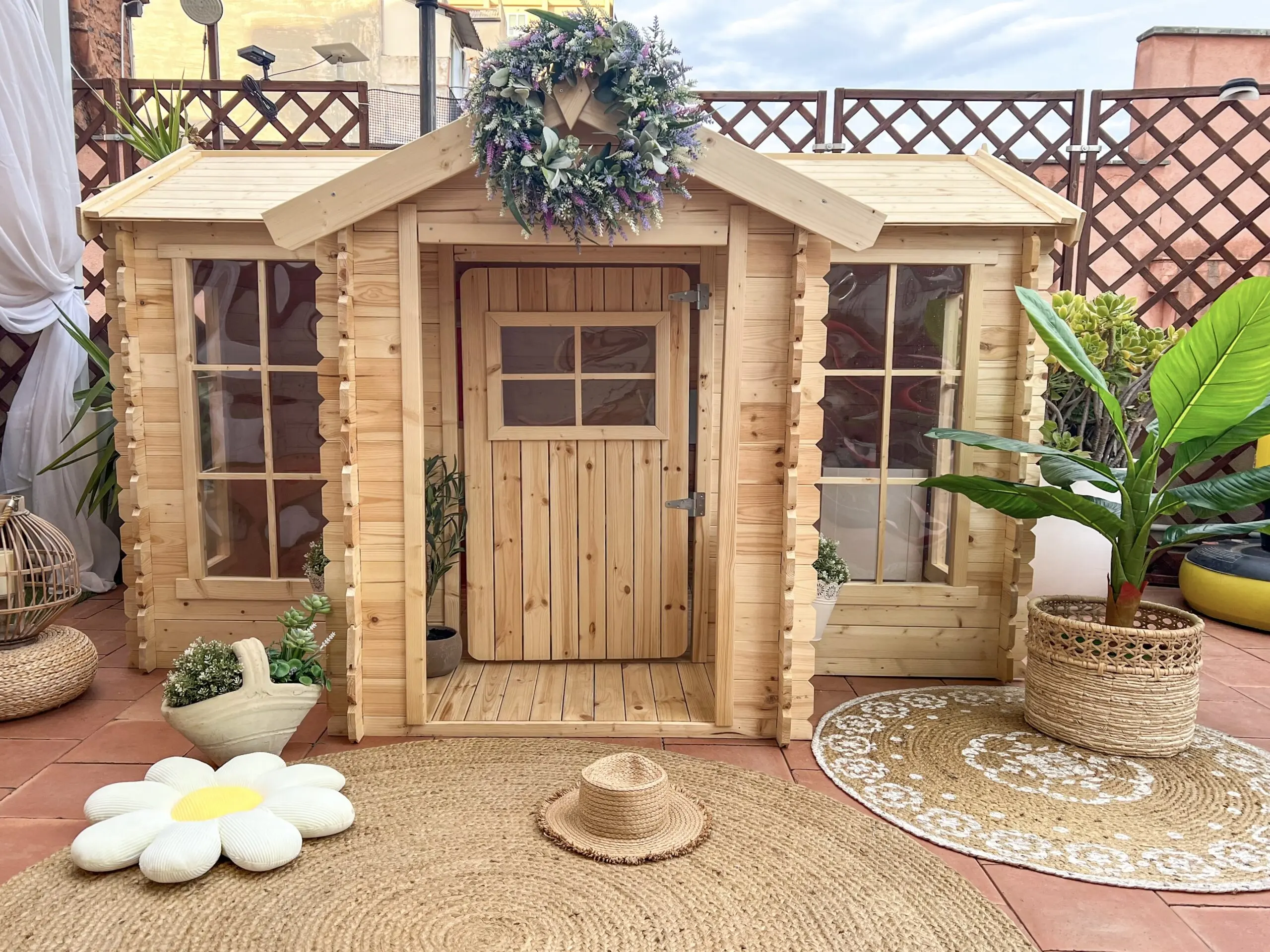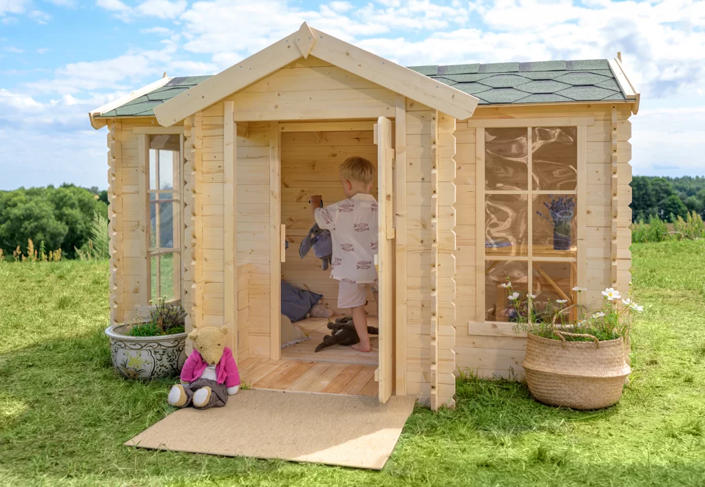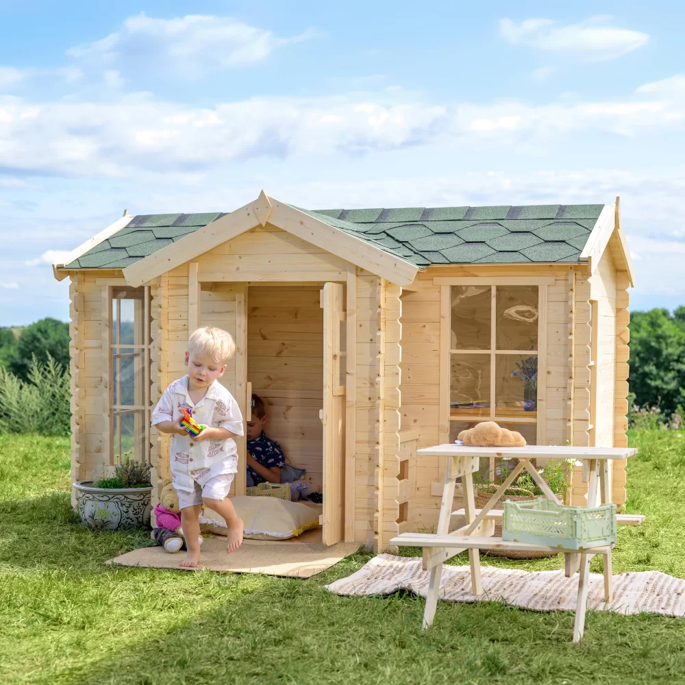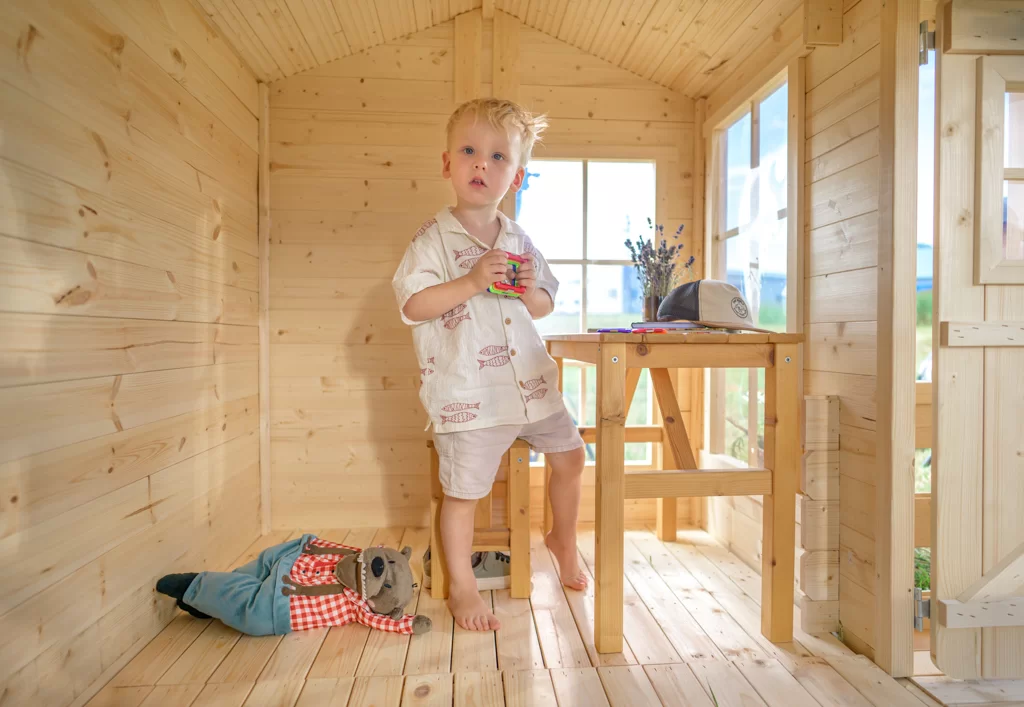 Alle speelhuisjes zijn gemaakt van natuurlijk hout, vrij van schadelijke stoffen, en EN-71 gecertificeerd, wat maximale veiligheid garandeert. De ramen en deuren hebben 15–20 mm speling tussen de kozijnen, waardoor het risico op verwondingen wordt verminderd.
