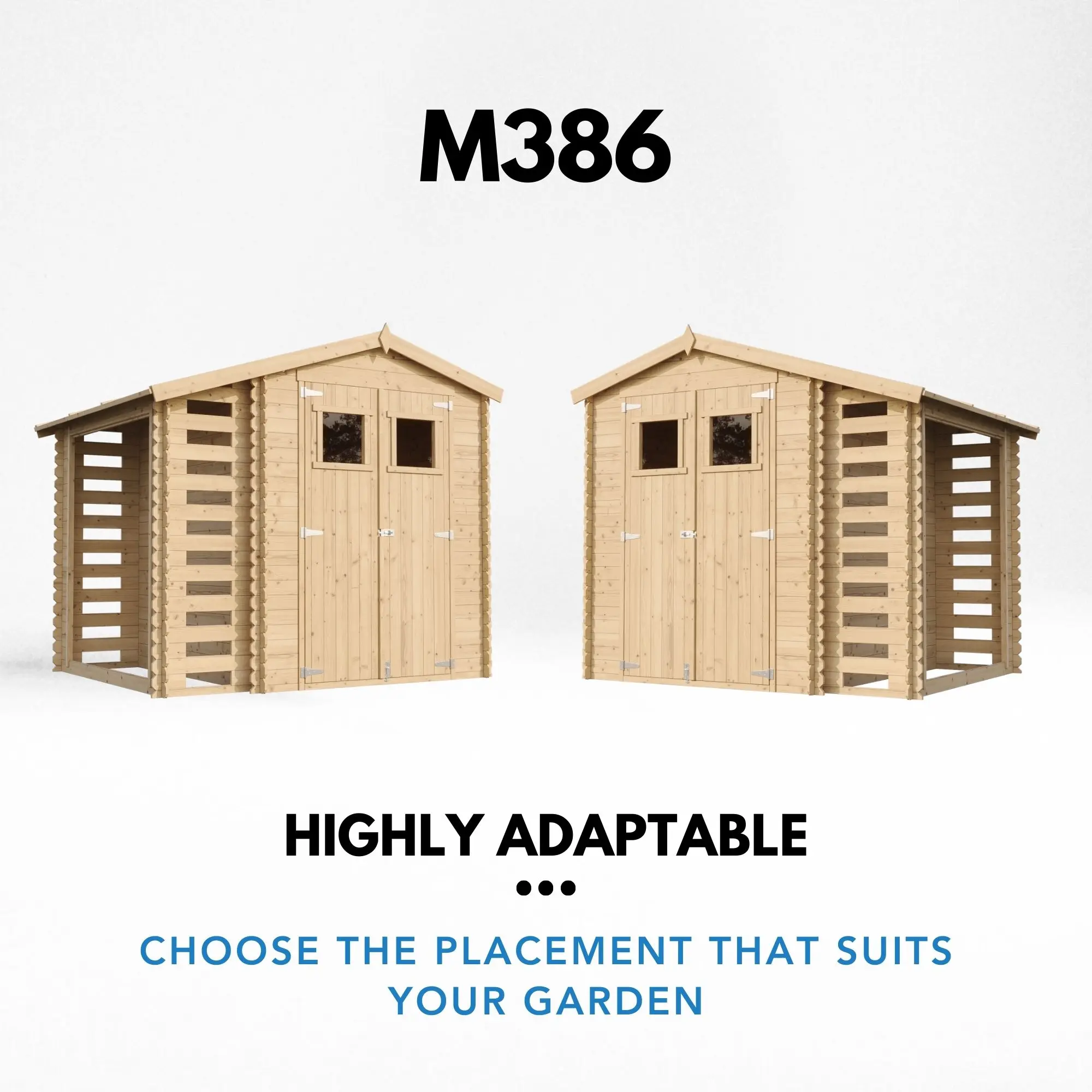 De structuur van dit houten tuinhuis M386 is gebaseerd op het planken-inkliksysteem, waarbij de wanden in elkaar grijpen.