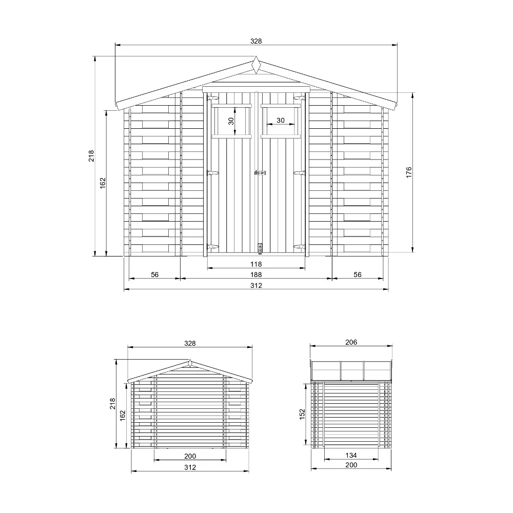 Tuinhuis M391 – 312 x 200 cm – 6 m2