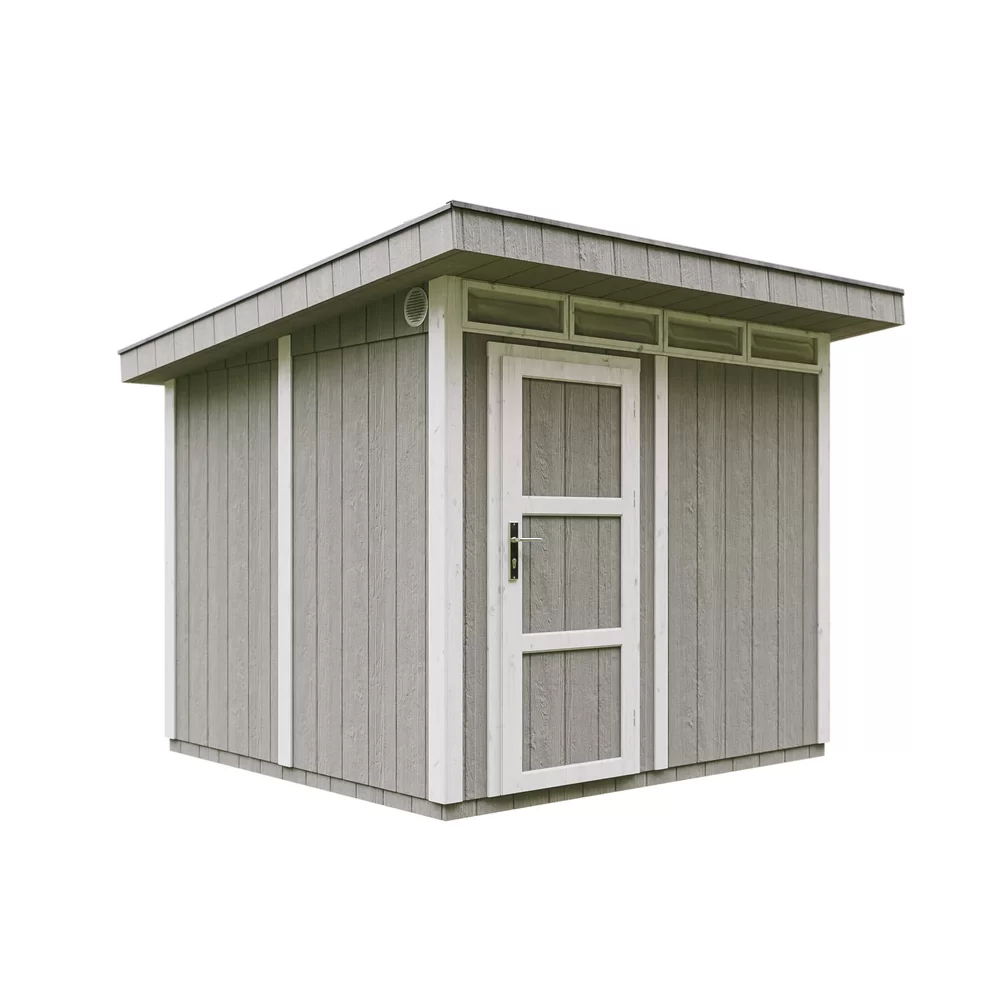Met zijn strakke vormgeving en onderhoudsarme afwerking past dit tuinhuis perfect in elke buitenruimte – van een moderne stadstuin tot een landelijke omgeving.