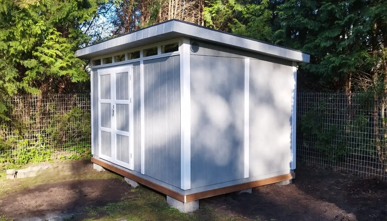 Dit houten tuinhuis met LP® SmartSide® panelen combineert een modern ontwerp met uitzonderlijke duurzaamheid.