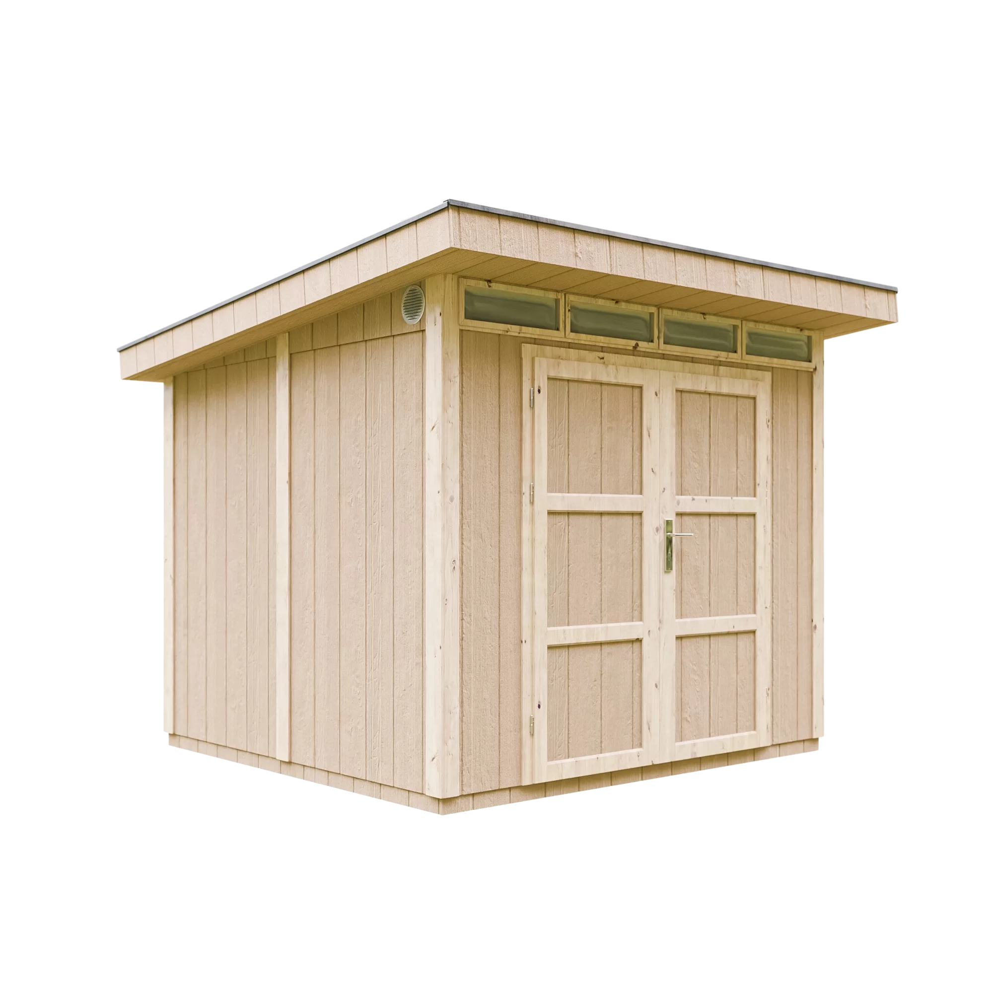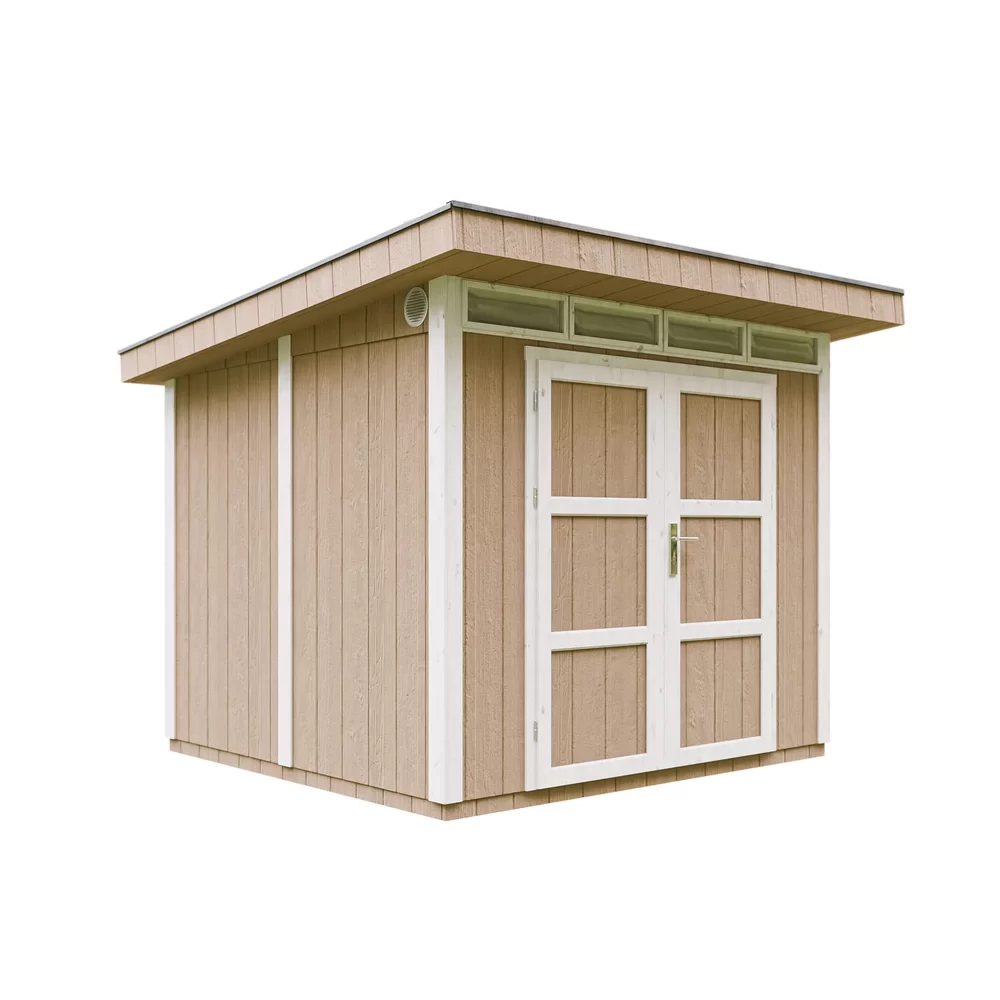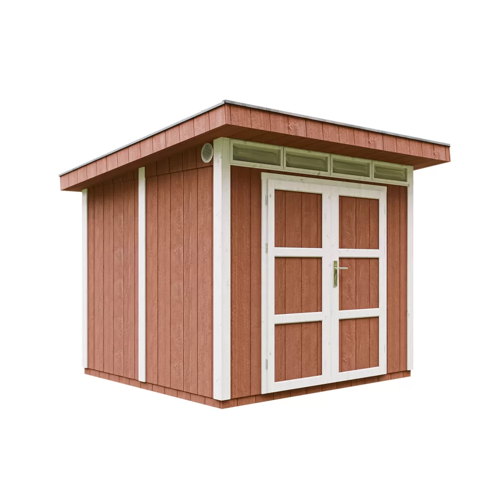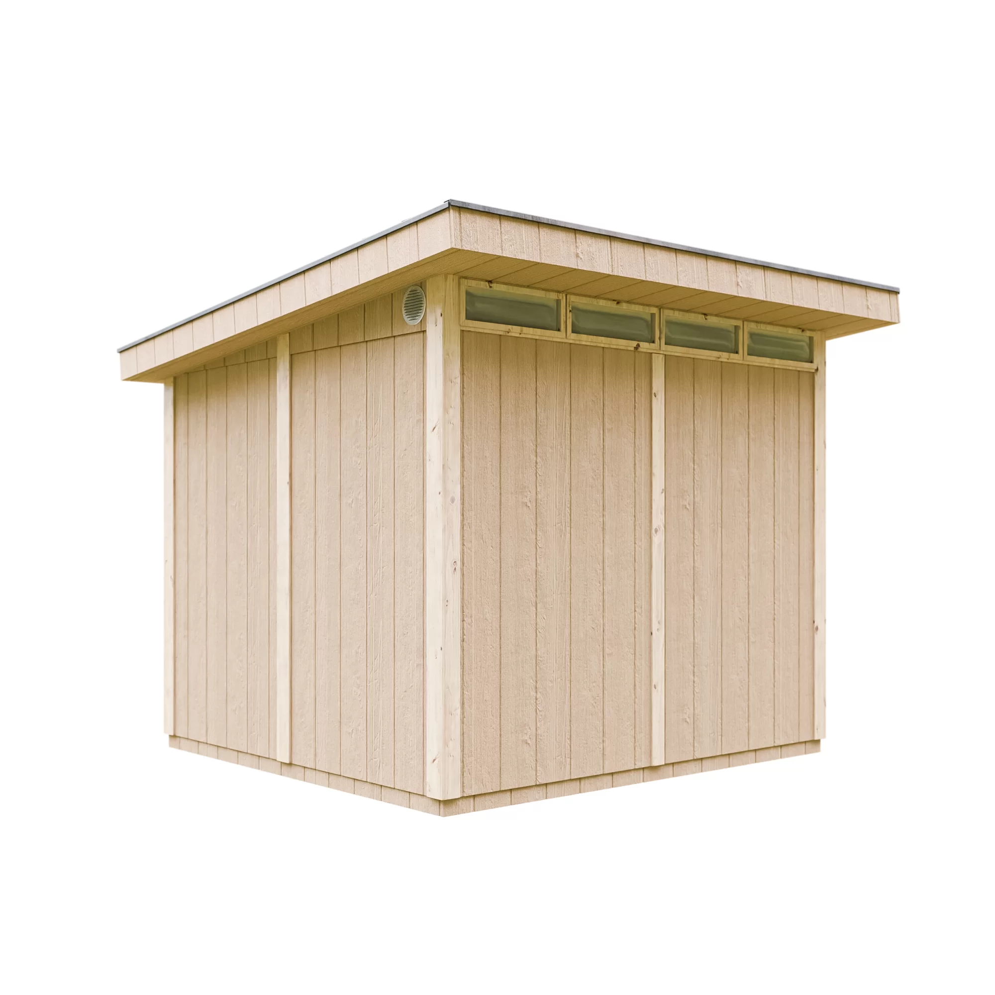 Alles wat je nodig hebt om in één dag een stijlvol, stevig en onderhoudsvriendelijk houten tuinhuis te plaatsen.