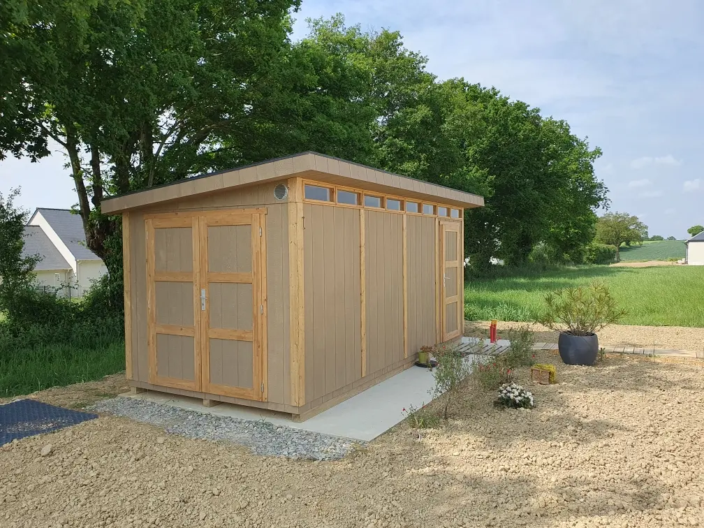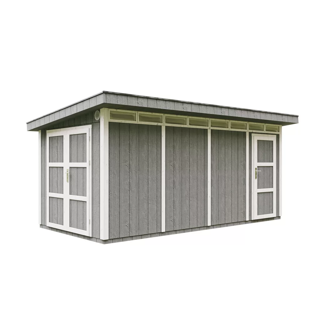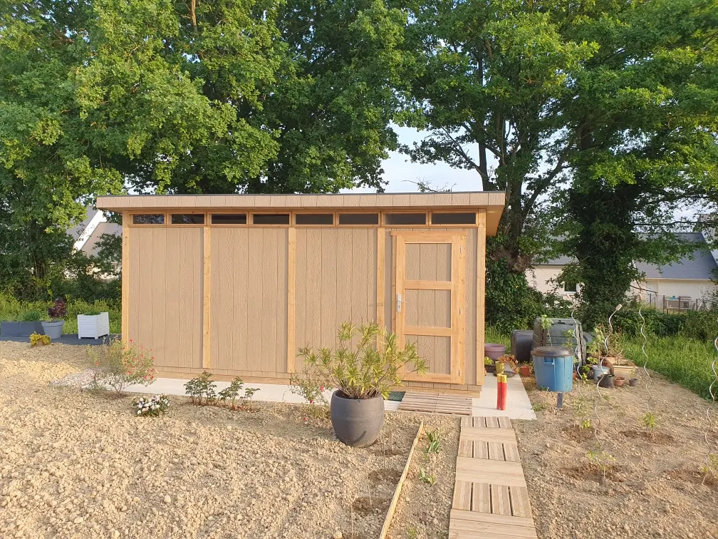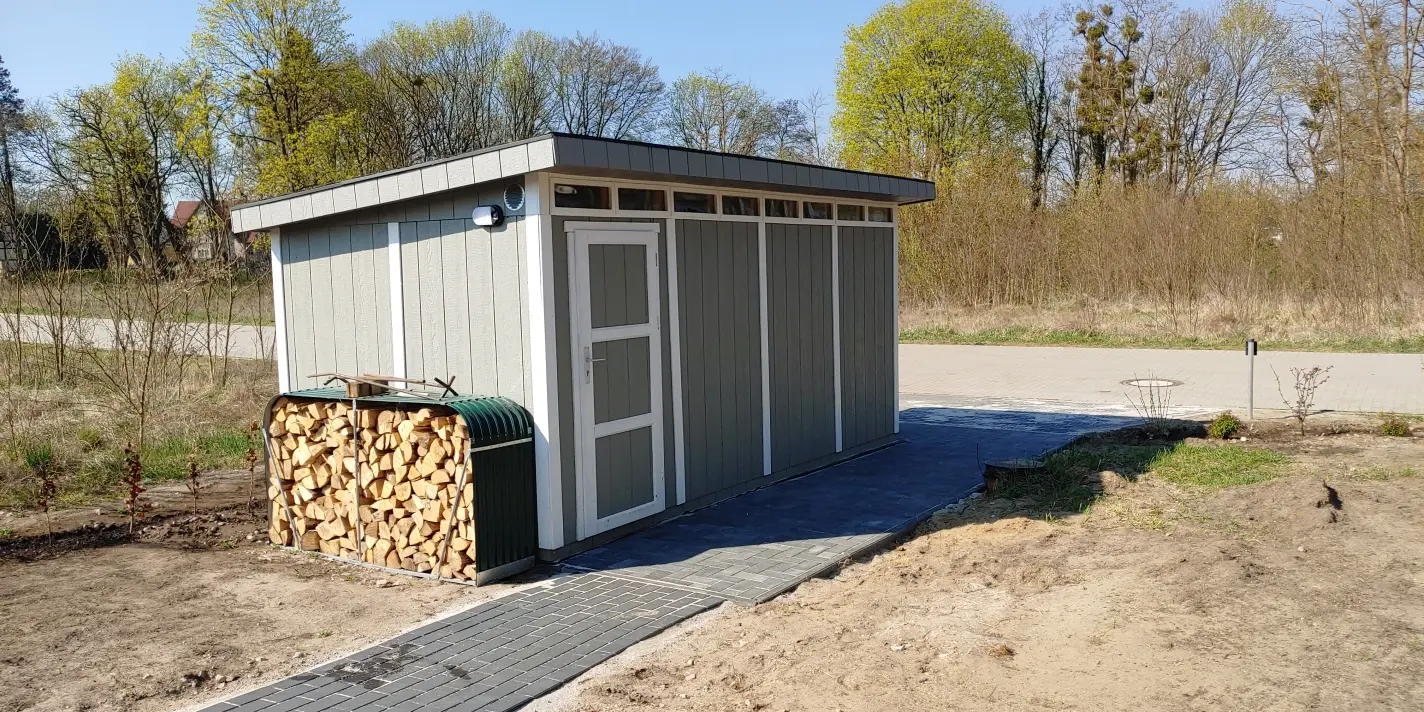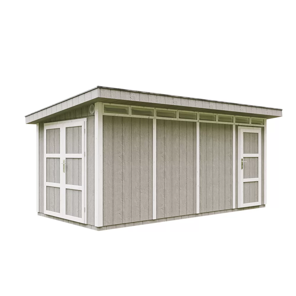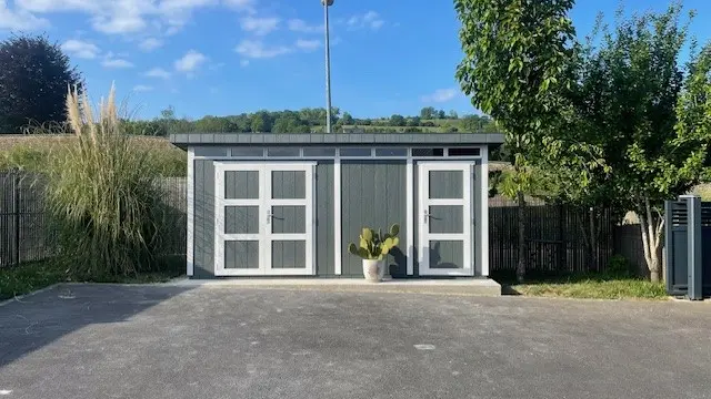 Met zijn strakke vormgeving en onderhoudsarme afwerking past dit tuinhuis perfect in elke buitenruimte – van een moderne stadstuin tot een landelijke omgeving.