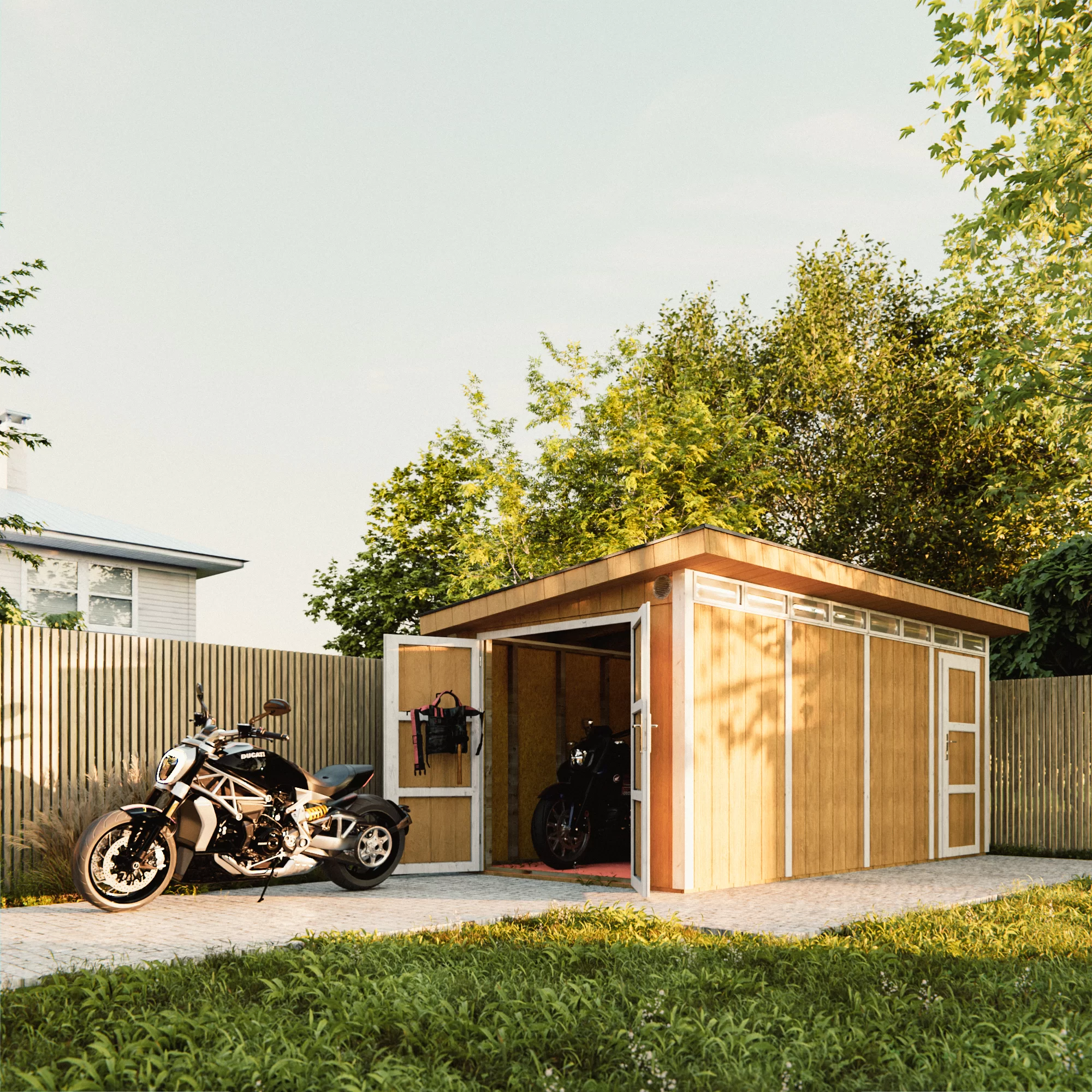 Het moderne en minimalistische houten tuinhuis met LP® SmartSide® panelen is de ideale oplossing voor wie tuingereedschap, fietsen, klein materiaal of kinderspeelgoed netjes en overzichtelijk wil opbergen.