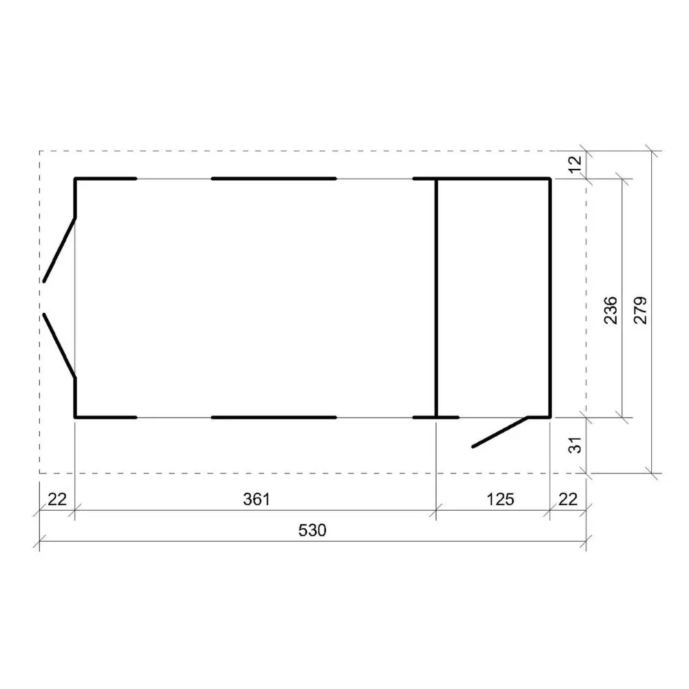Belangrijk: Wandpanelen en houten afwerkingen moeten behandeld worden. Het tuinhuis wordt ongeschilderd geleverd, waardoor je de kleuren naar wens kunt aanpassen.