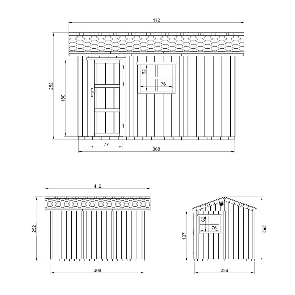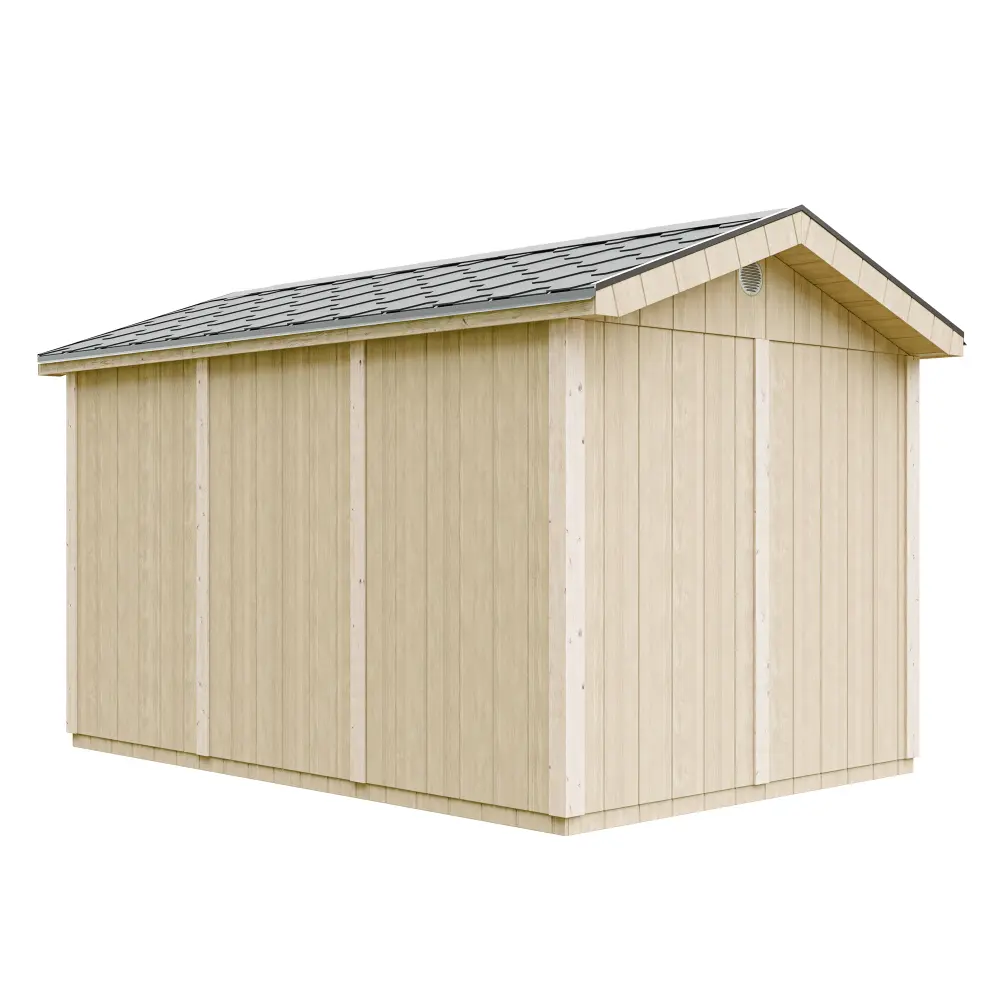 De wanden van het tuinhuis bestaan uit een 60×60 mm houten frame met 10 mm dikke LP® SmartSide® panelen met een gegronde oppervlakte.
