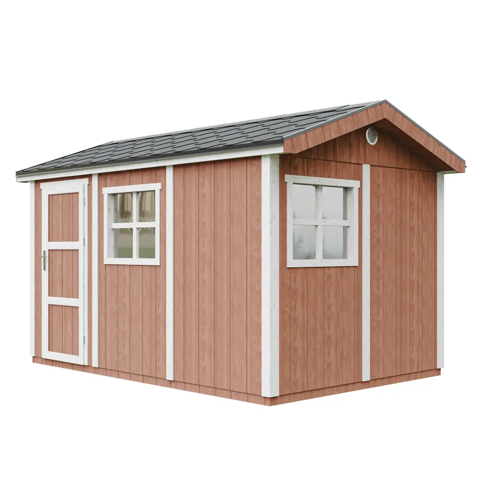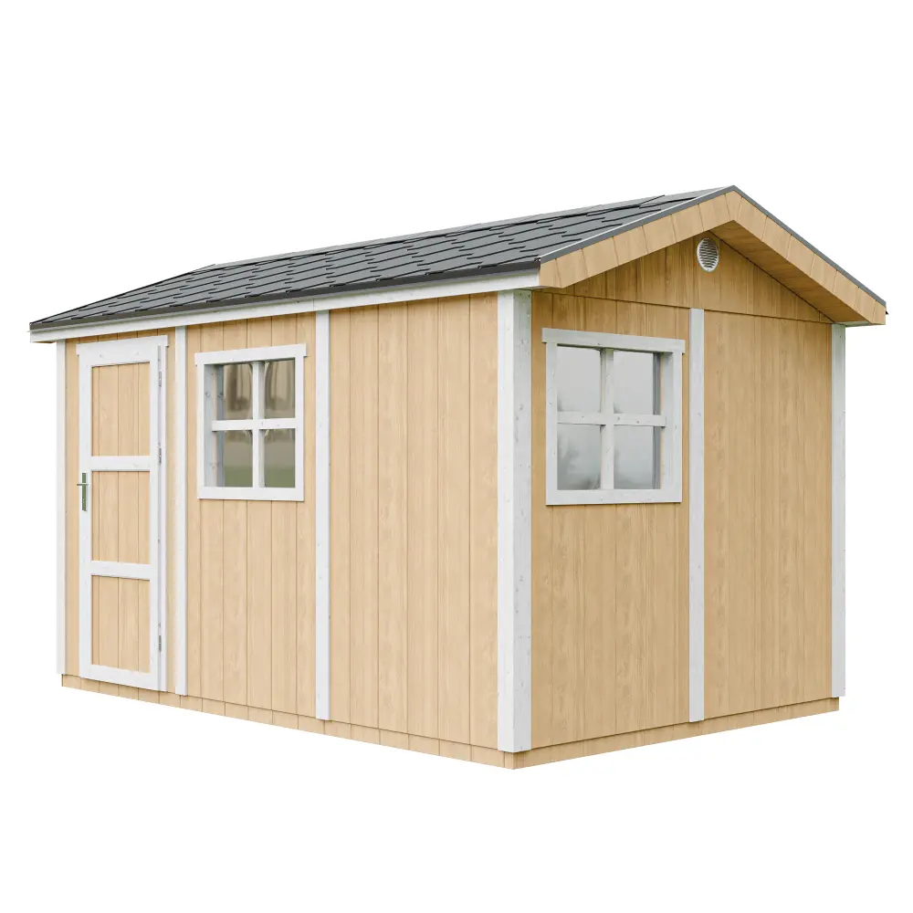 Alles wat je nodig hebt om in één dag een stijlvol, stevig en onderhoudsvriendelijk houten tuinhuis te plaatsen.