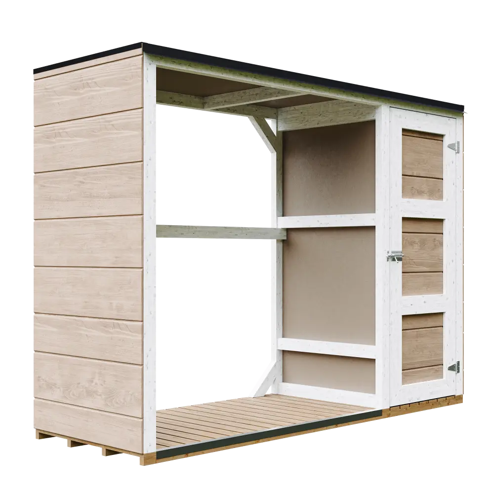 Deze combinatie maakt de houtopslag extreem weerbestendig en onderhoudsarm, ideaal voor langdurig gebruik in alle seizoenen.