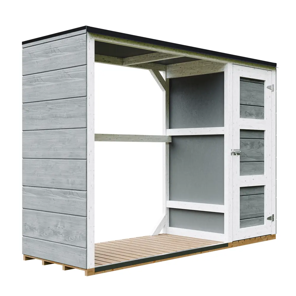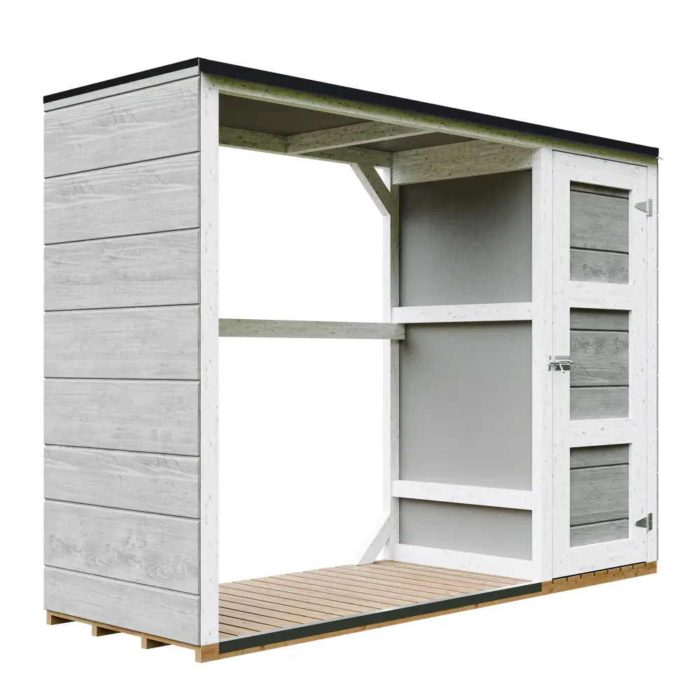 De stevige constructie en onderhoudsarme panelen maken dit houthok ideaal voor het netjes en droog bewaren van brandhout, tuingereedschap of buitenspullen.