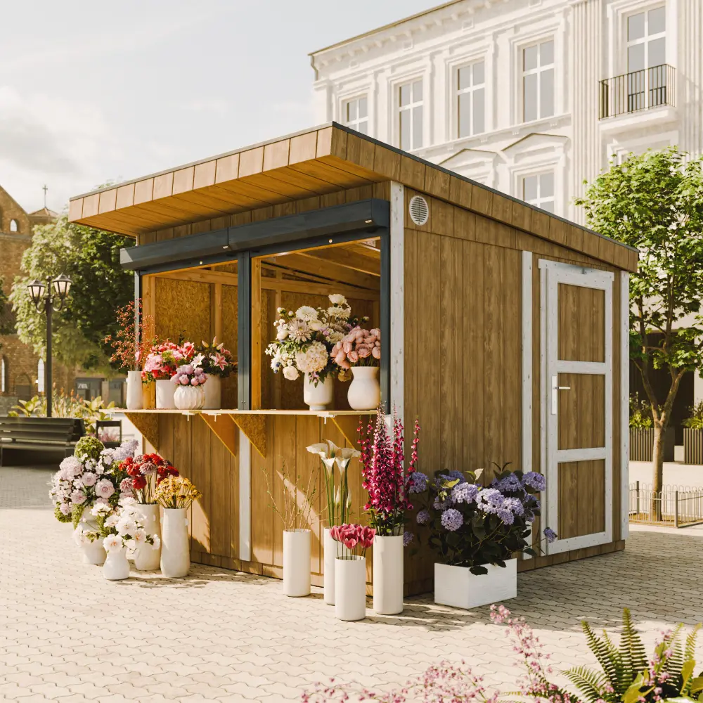 Dankzij de hoogwaardige materialen en de onderhoudsarme afwerking is deze houten kiosk ontworpen voor langdurige duurzaamheid en een strakke, moderne look.