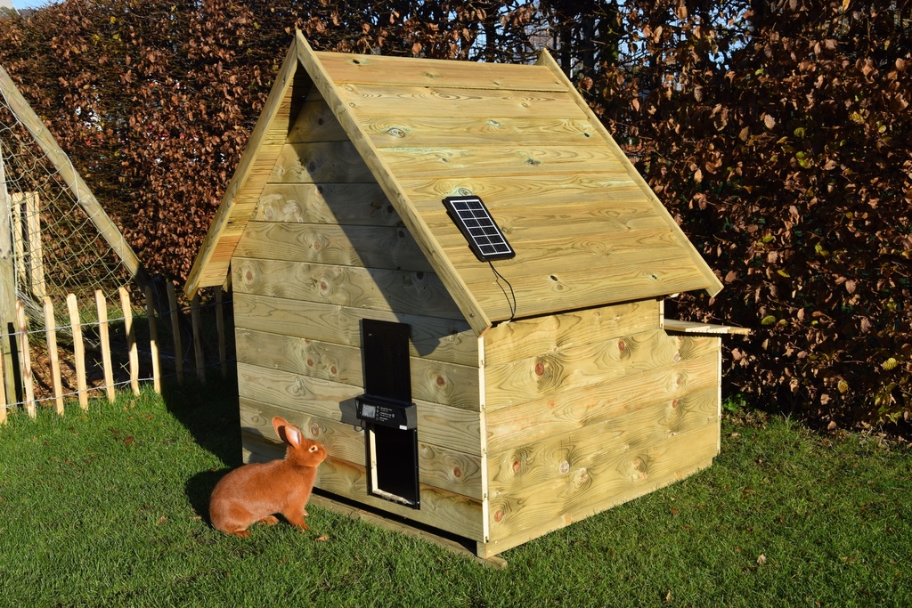 • In handig bouwpakket met voorgemonteerde panelen, een scharnierend deurtje en een elektrisch luik op zonne-energie. 3