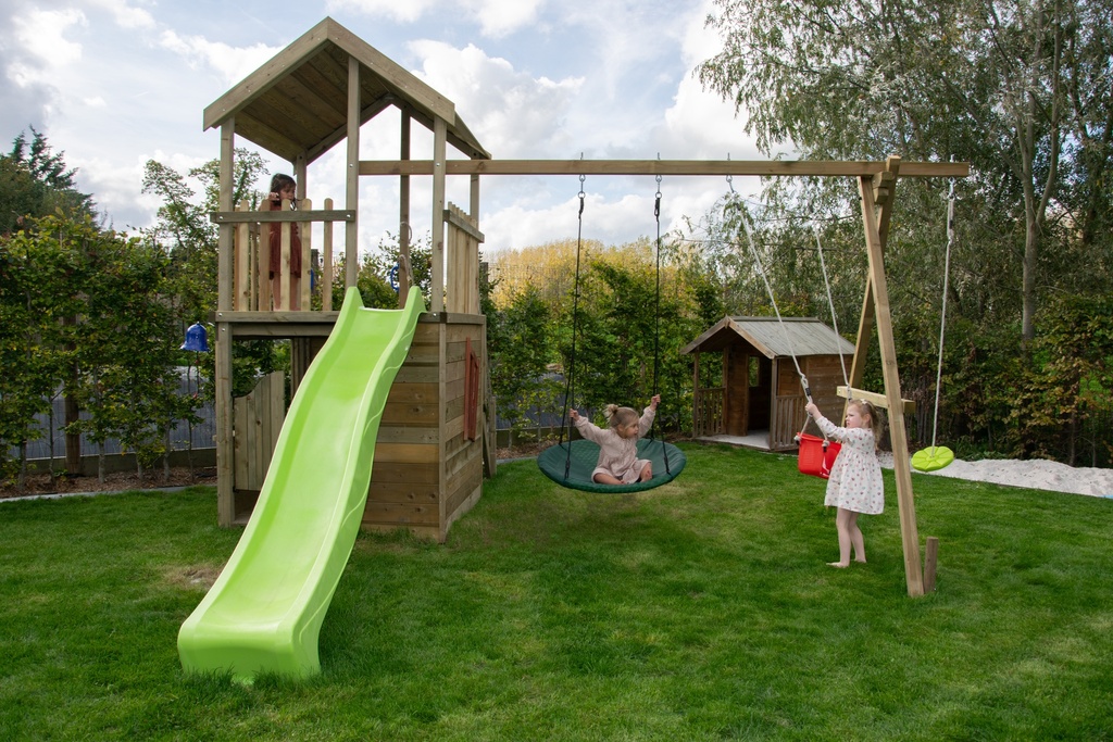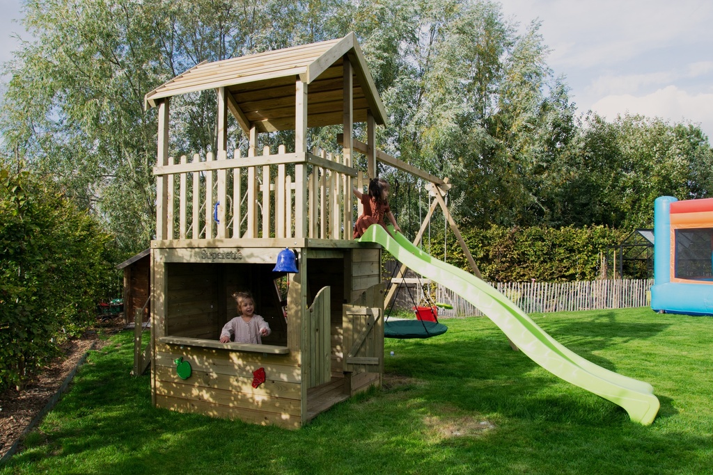 • De glijbaan en 4 grondankers zijn niet inbegrepen maar