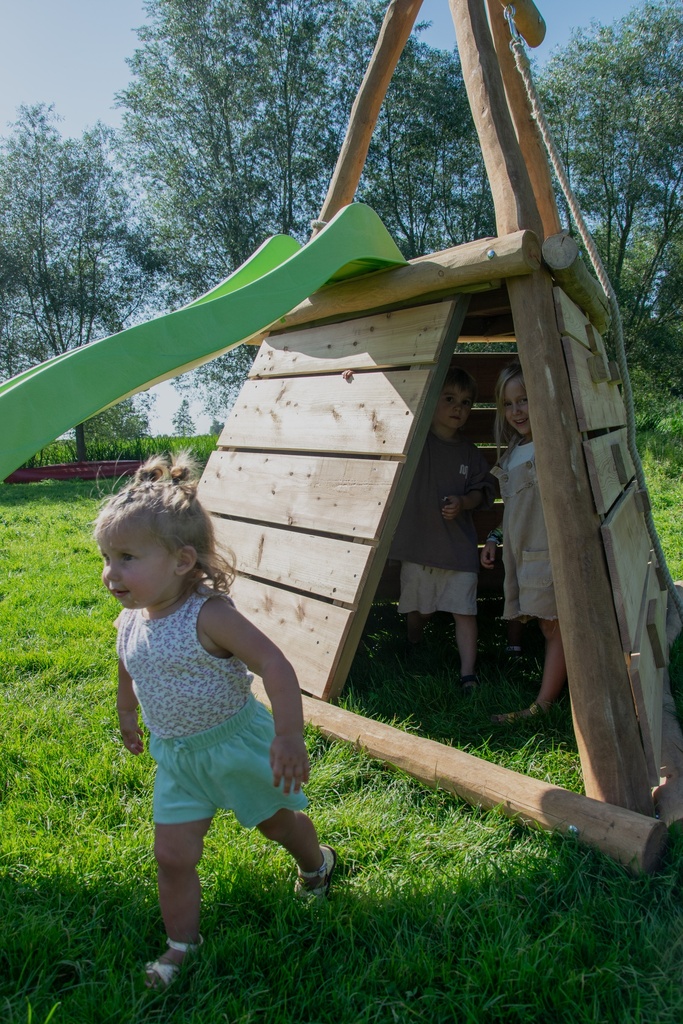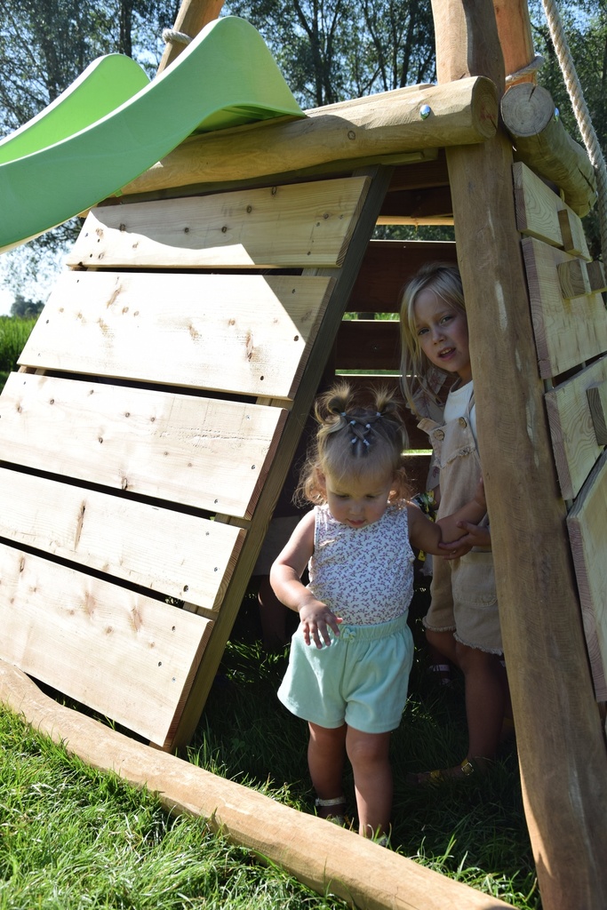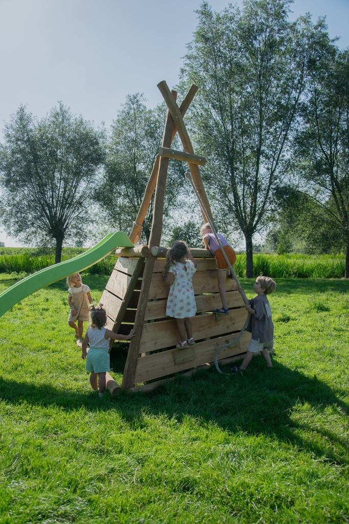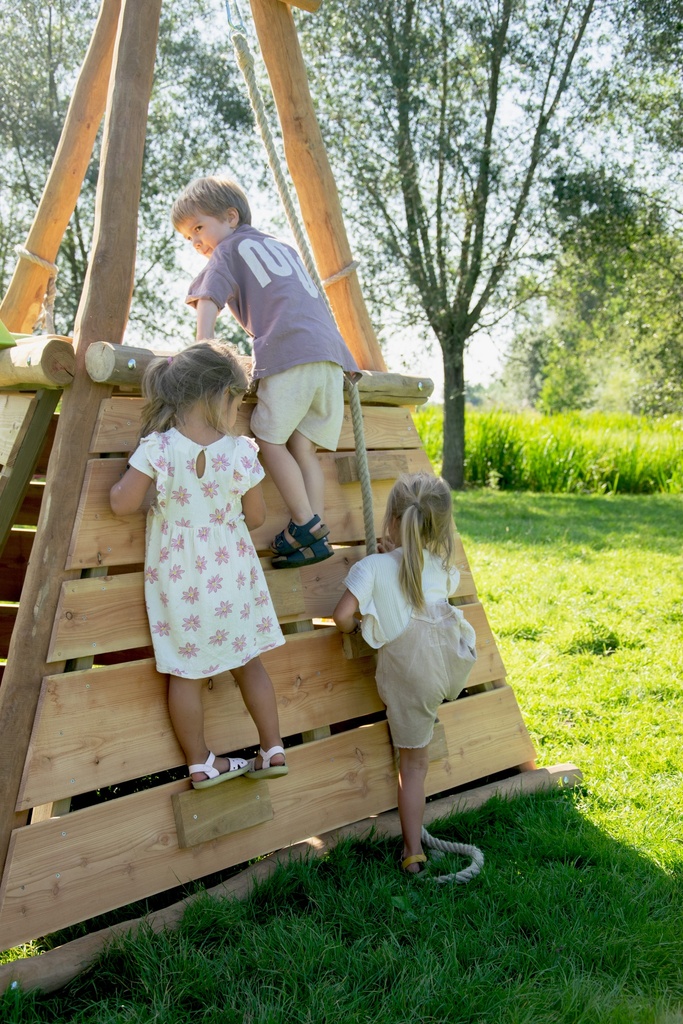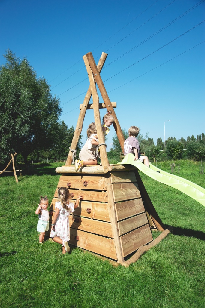 – Klimmuur met klimgrepen en klimblokken in robinia en