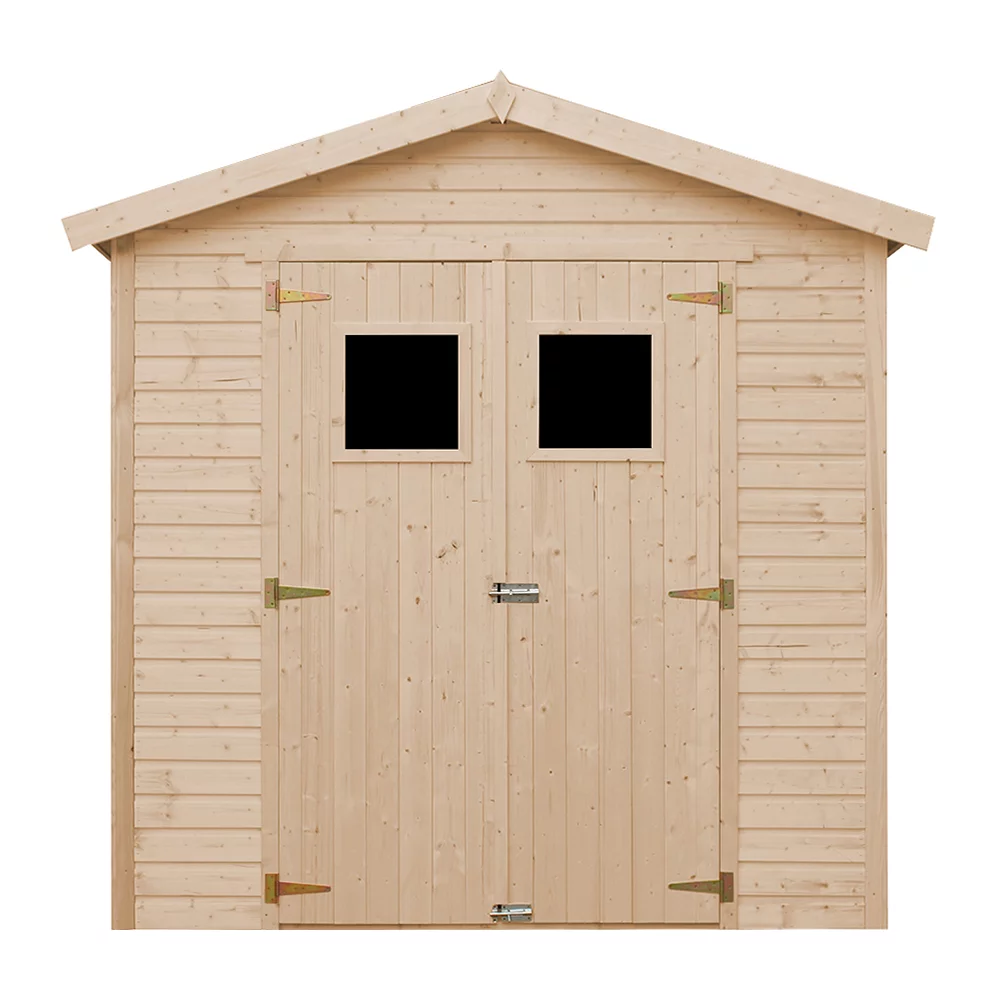 De 17 mm dikke wanden, duurzame OSB-3 dakplaten en waterdichte bitumen daklaag garanderen weerbestendigheid en stabiliteit.