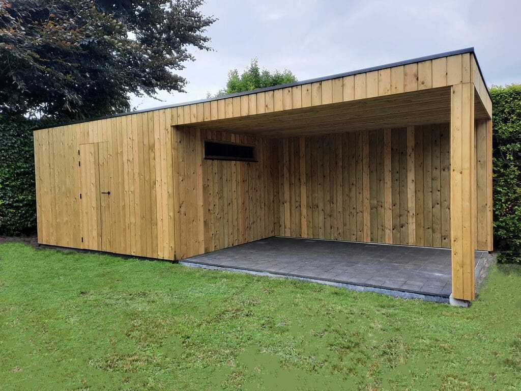 Het tuinhuis Veda met of zonder lounge is de trend van het moment. De verticale lijnen zorgen voor een uiterst strak design waarbij de planchetten steeds in één volledige lengte worden gemaakt. Dit model zorgt zonder enige twijfel voor harmonie in jouw tuin.
