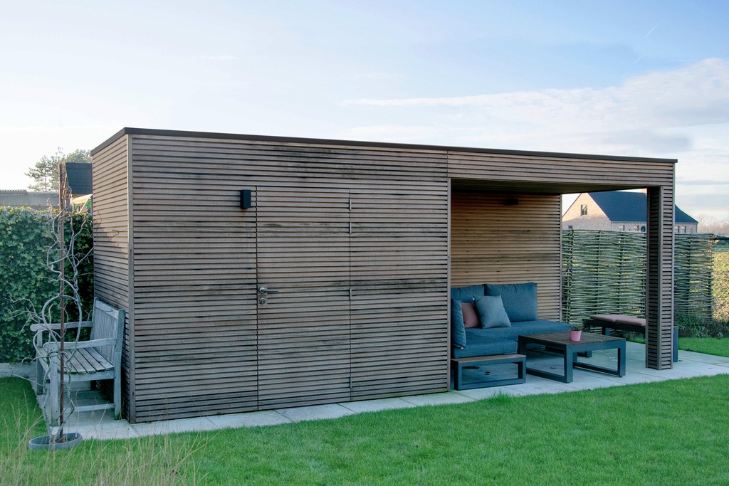 - De bekleding van het tuinhuis heeft steeds een houtdikte van minstens 22 mm.