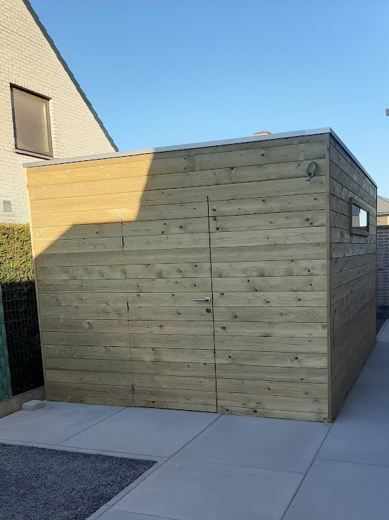 - De tuinhuizen worden geleverd in voorgemonteerde panelen waarbij elke wand uit 1 deel bestaat tot 4 meter.