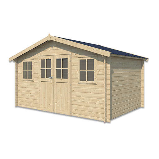 Het is een klassieke blokhut gemaakt van 28 mm massief vurenhout met winddichte 3D-hoekverbindingen, ideaal voor tuinopslag of hobbyruimte.